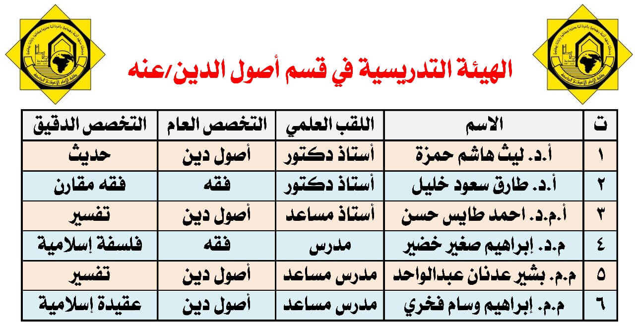 فَإِن أَفضَل ما يتعلّمه الإنسان هو العلم الشَّرْعِي الذِي مِن خِلاله يستطيع أن يُهذِّب نفسه ويعلم أولاده وجيله وان مِن نَعِم الله عليْنَا أن جعلنَا مِمَّن يَعلَم الأجيال في قِسْمِ لَطَالَمَا يُزْهِر بِالعلوم الشَّرْعِيَّة التي هِي نِبْرَاس كُلَّ العُلومِ لَا سِيَّما ونحن في مَدِينَة تَعِج بالثقافة والازدهار فِي مَدِينَة يَبذُل أَهلَها الجهد الكبير من أجل أن يحافظوا على صرحهم هذا وقسمهم هَذَا لأنه مَلاذ آمن لأولادهم وحياتهم العملية فَإِن قِسْمِ أُصُولِ الدِّينِ فِي عَنْهُ يَحْتَضِنَ فِي جناياته ثُلّة مِن الشِّبَاب من البنين والبنات الَّذِينَ جَاءُوا لِكَيْ يُحصنوا أنفسهم بمبادئ دينهم فَكَانَ لِلْقَسْم رَونق جميل بوجودهم واحترامهم له ومثابرتهم مِن أَجل أَوَّل إنجاحه وتعلّمهم ثَانِية وَكَذَا نَفْرَح بِقَسْمِنَا أَنَّ فِيه مِن الأساتذة الأكفاء الذين يُشار.