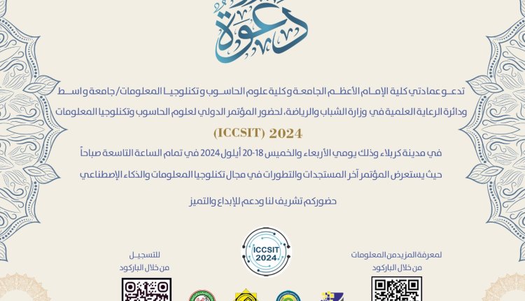 للمشاركة في المؤتمر يمكنك زيارة الموقع الرسمي الخاص بالمؤتمر المؤتمر الدولي لعلوم الحاسوب وتكنولوجيا المعلومات – المؤتمر الدولي لعلوم الحاسوب وتكنولوجيا المعلومات (imamaladham.edu.iq)