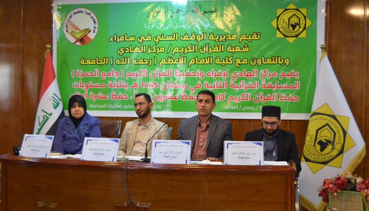 برعاية السيد العميد الأستاذ الدكتور صلاح الدين فليح حسن المحترم ومتابعة المشرف الإداري والمالي لأقسام صلاح الدين الأستاذ الدكتور مصعب سلمان أحمد ، انطلقت المسابقة القرآنية الثانية في رمضان 1445هــ والتي يقيمها مركز الهادي لإقراء وتحفيظ القرآن الكريم بالتعاون مع كلية الإمام الأعظم الجامعة في سامراء