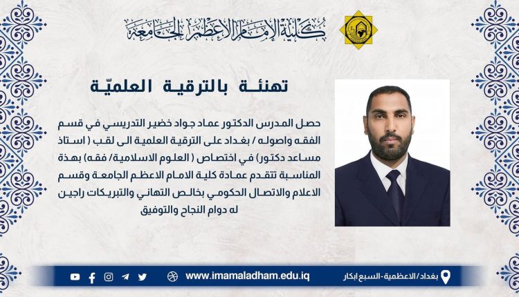 تهنئة بالترقية العلمية في أبريل 24, 2024 45 شارك FacebookTwitterWhatsAppالبريد الإلكترونيFacebook MessengerLinkedinTelegram أكمل القراءة