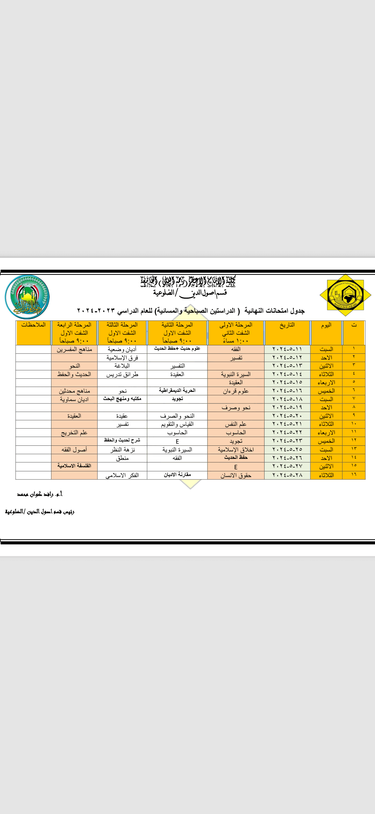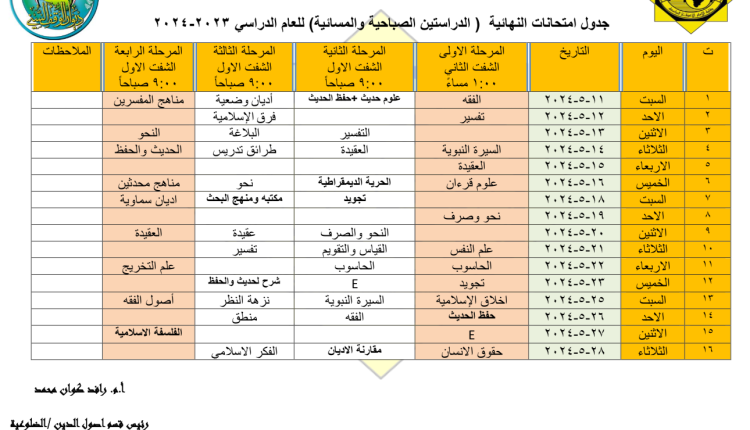 جدول الامتحانات النهائية لقسم أصول الدين – الضلوعية في مايو 6, 2024 345 شارك FacebookTwitterWhatsAppالبريد الإلكترونيFacebook MessengerLinkedinTelegram أكمل القراءة