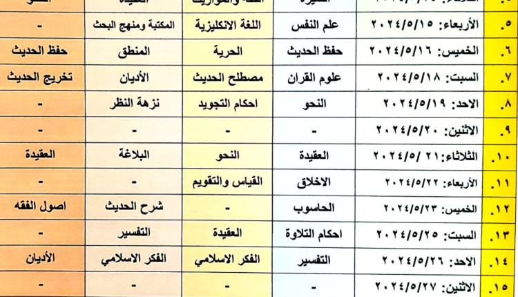 جدول الامتحانات النهائية لقسم اصول الدين – عنه آخر تحديث مايو 8, 2024 841 شارك FacebookTwitterWhatsAppالبريد الإلكترونيFacebook MessengerLinkedinTelegram أكمل القراءة