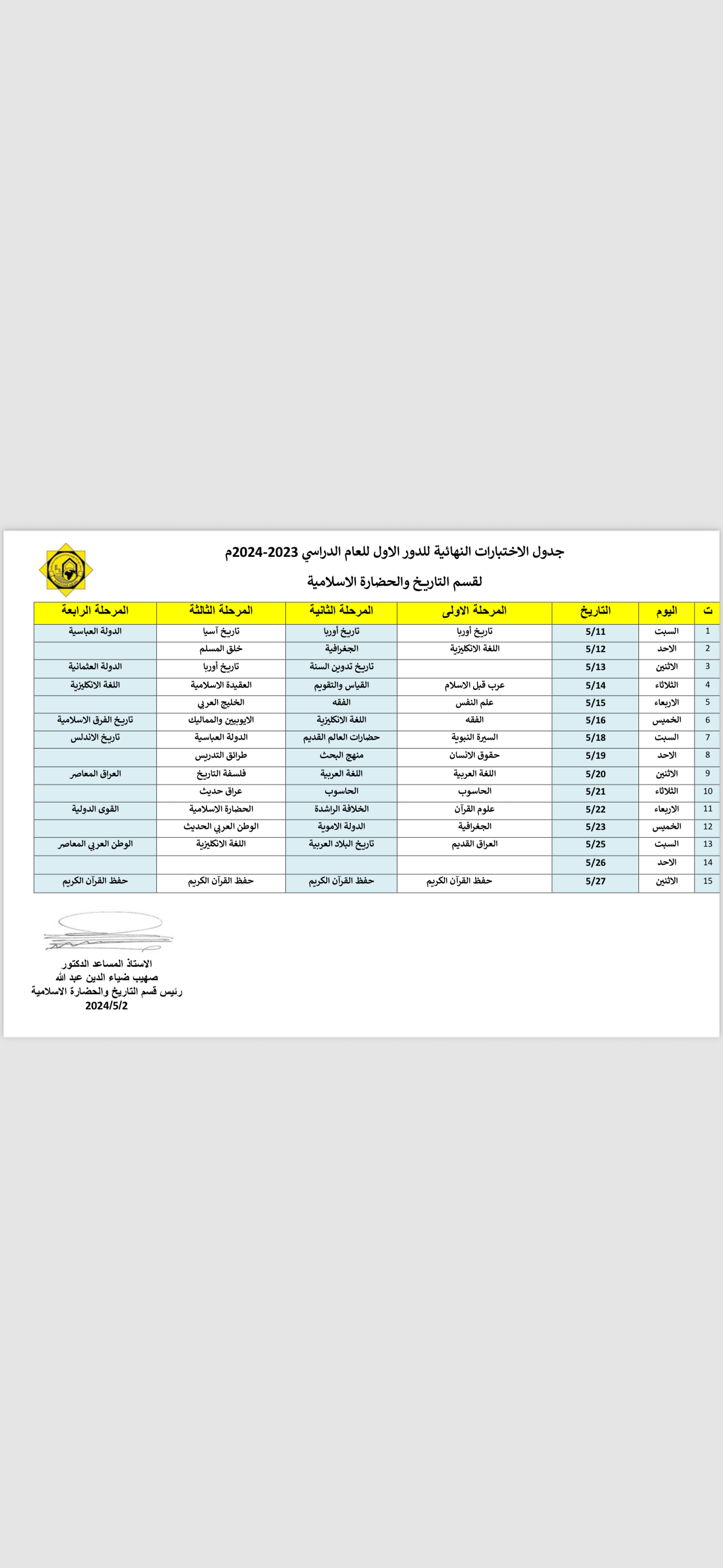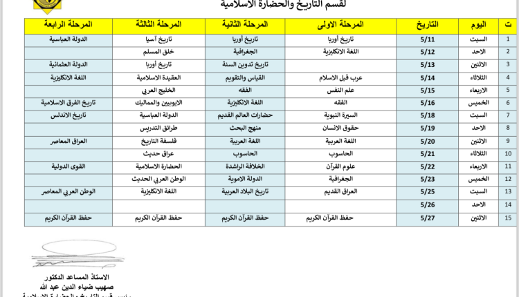 جدول الامتحانات النهائية لقسم التاريخ والحضارة الإسلامية آخر تحديث مايو 6, 2024 675 شارك FacebookTwitterWhatsAppالبريد الإلكترونيFacebook MessengerLinkedinTelegram أكمل القراءة