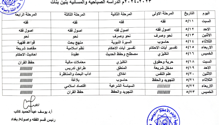 جدول الامتحانات النهائية لقسم الفقه وأصوله – بغداد في مايو 6, 2024 356 شارك FacebookTwitterWhatsAppالبريد الإلكترونيFacebook MessengerLinkedinTelegram أكمل القراءة