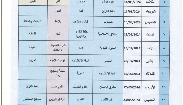 جدول الامتحانات النهائية 2023-2024 آخر تحديث مايو 2, 2024 1٬247 شارك FacebookTwitterWhatsAppالبريد الإلكترونيFacebook MessengerLinkedinTelegram اعلان الى طلبتنا الاعزاء اليكم جدول الامتحانات النهائية للدراستين الصباحية والمسائية للعام الدراسي الحالي 2023- 2024 متمنين لكم التوفيق والنجاح أكمل القراءة