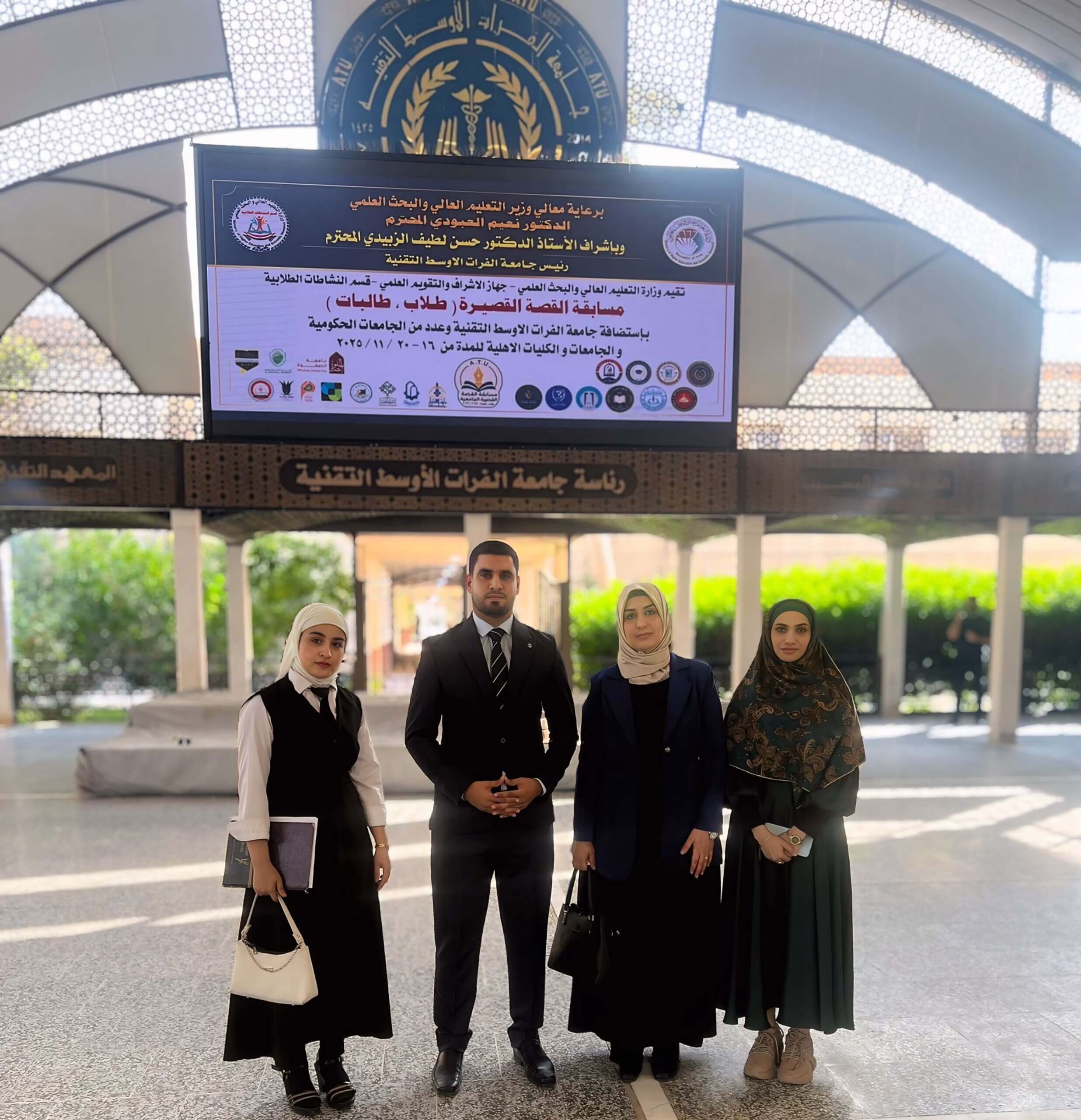 برعاية معالي وزير التعليم العالي والبحث العلمي، الدكتور نعيم العبودي المحترم، وبإشراف الأستاذ الدكتور حسن لطيف الزبيدي المحترم، رئيس جامعة الفرات الأوسط التقنية، اختتمت فعاليات مسابقة القصة القصيرة للطلاب والطالبات التي نظمها جهاز الإشراف والتقويم العلمي – قسم النشاطات الطلابية.