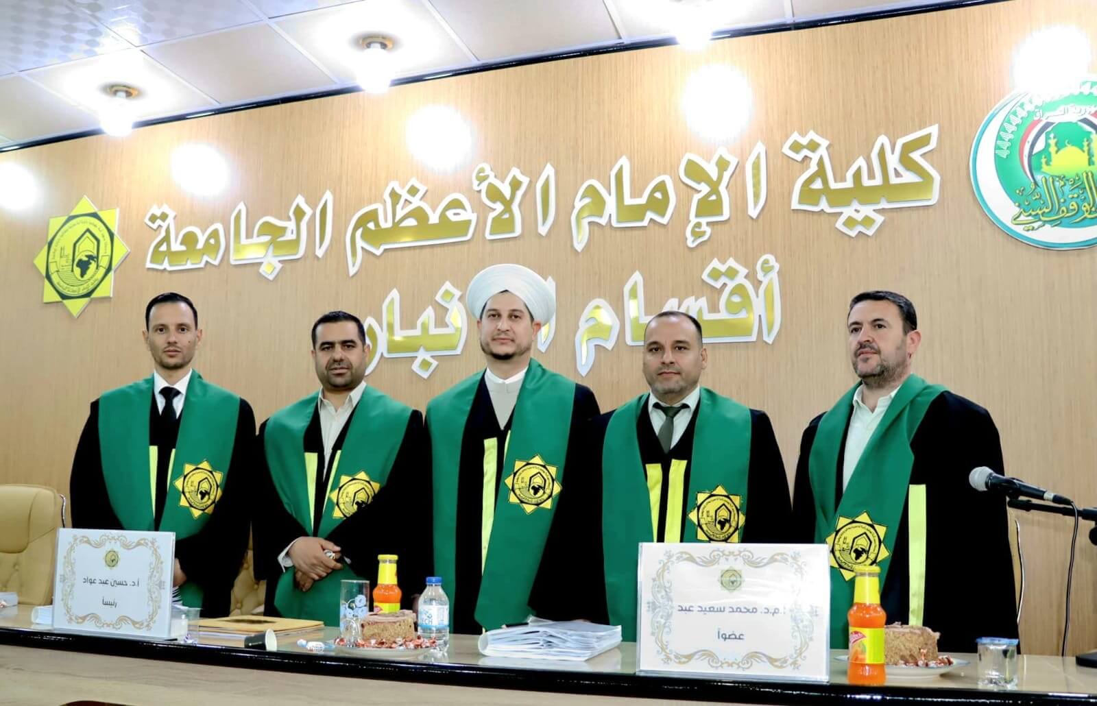 أُجْريتْ يومَ الثّلاثاء ٢٠٢٤/١٠/٢٢ المناقشةُ العَلَنيَّةُ لطالبِ المَاجِستيرِ في قسْمِ الدَّعوةِ والخَطابةِ والفِكْرِ ( عُثمان هادي عبَّاس )، وذلكَ في قاعةِ كُلِّيَّةِ الإمامِ الأَعظمِ الجَامعةِ في الأَنبارِ، في رِسَالتهِ الموسُومةِ بـــ( الشَّيخُ محمَّد سَعِيْد رَمَضَان البوطيُّ ومَوقفُهُ من الفِكْرِ الغربيِّ الوافِد )، وبعدَ مُناقشةِ الرِّسالةِ وما احْتوتْهُ من السَّادةِ الأعضاءِ مُناقشةً مُستفيضةً نالتِ الرِّسالةُ القبولَ، بتقديرِ مُسْتوفٍ.