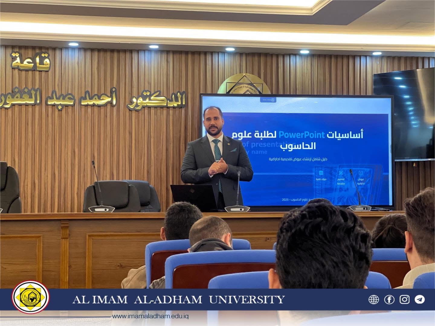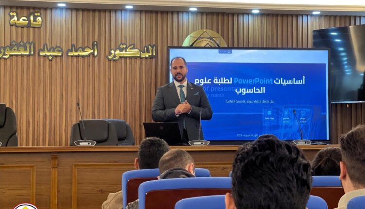 نظّم قسم علوم الحاسبات بالتعاون مع مركز التعليم المستمر ورشة تدريبية بعنوان «أساسيات برنامج PowerPoint»، وذلك على قاعة الشيخ الدكتور أحمد عبدالغفور السامرائي رحمه الله تعالى، قدّمها المدرس المساعد محمد علي مجيد حميد ناصر، ضمن إطار الأنشطة العلمية الهادفة إلى تطوير المهارات الحاسوبية.