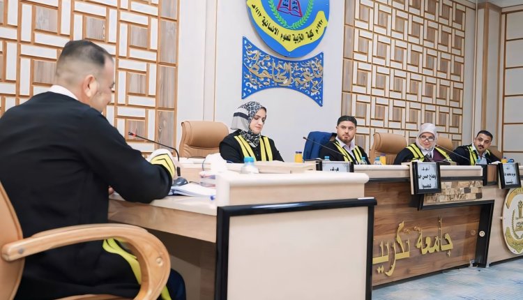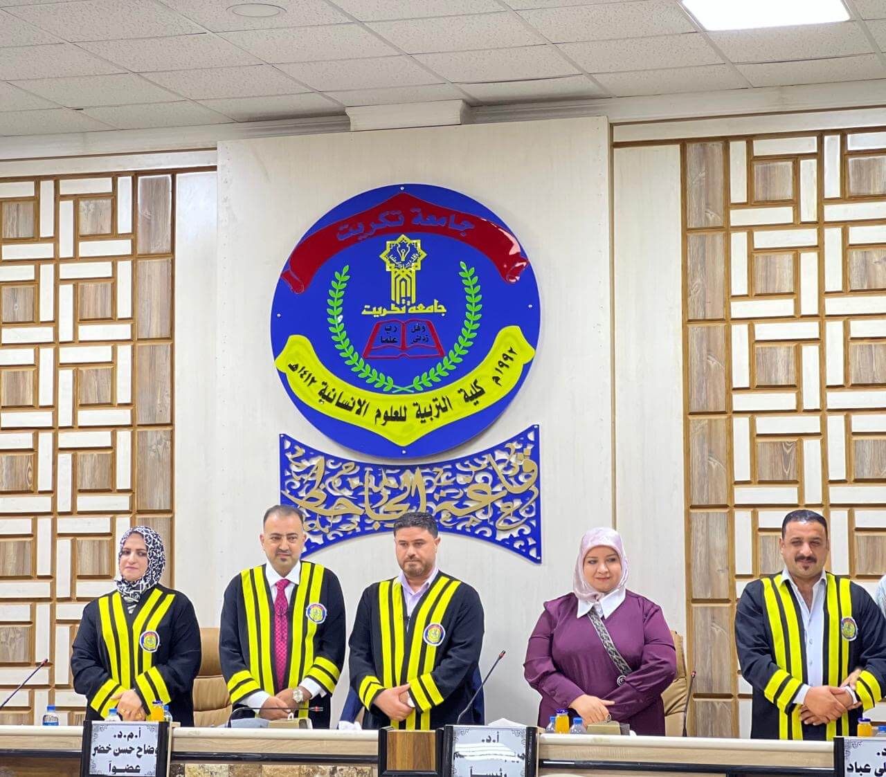 As part of the academic activities of the Department of Arabic Language, the Asst. Prof. Dr. Wadhah Hassan Khader participated in the discussion of the Master’s thesis of the student (Samir Mahmoud Khalaf Abd) entitled (The Argumentativeness of the Poetic Image in the Poetry of Abu Nuwas) which took place in the hall of the College of Education for Humanities on Wednesday, 26th June ,2024.