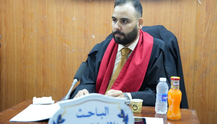 On Monday, 8th July, 2024, the public defense of the master’s thesis of the student (Bilal Khalid Nayif), in the Department of Quranic Readings, was conducted. This took place in the hall of Dr. Makki Al-Kubaisi – may Allah have mercy on him – in the Saba’ Abkar building. The title of his thesis was “The Tracking of Imam Al-Turmuzi (d. 1338 AH) on Imam Al-Shatibi (d. 590 AH) in his book Ghuniyat Al-Talib bi Sharh Al-Taybah, A Collection and Study”. After an extensive discussion of the thesis and its contents by the esteemed committee members, the thesis was approved with a distinction grade.