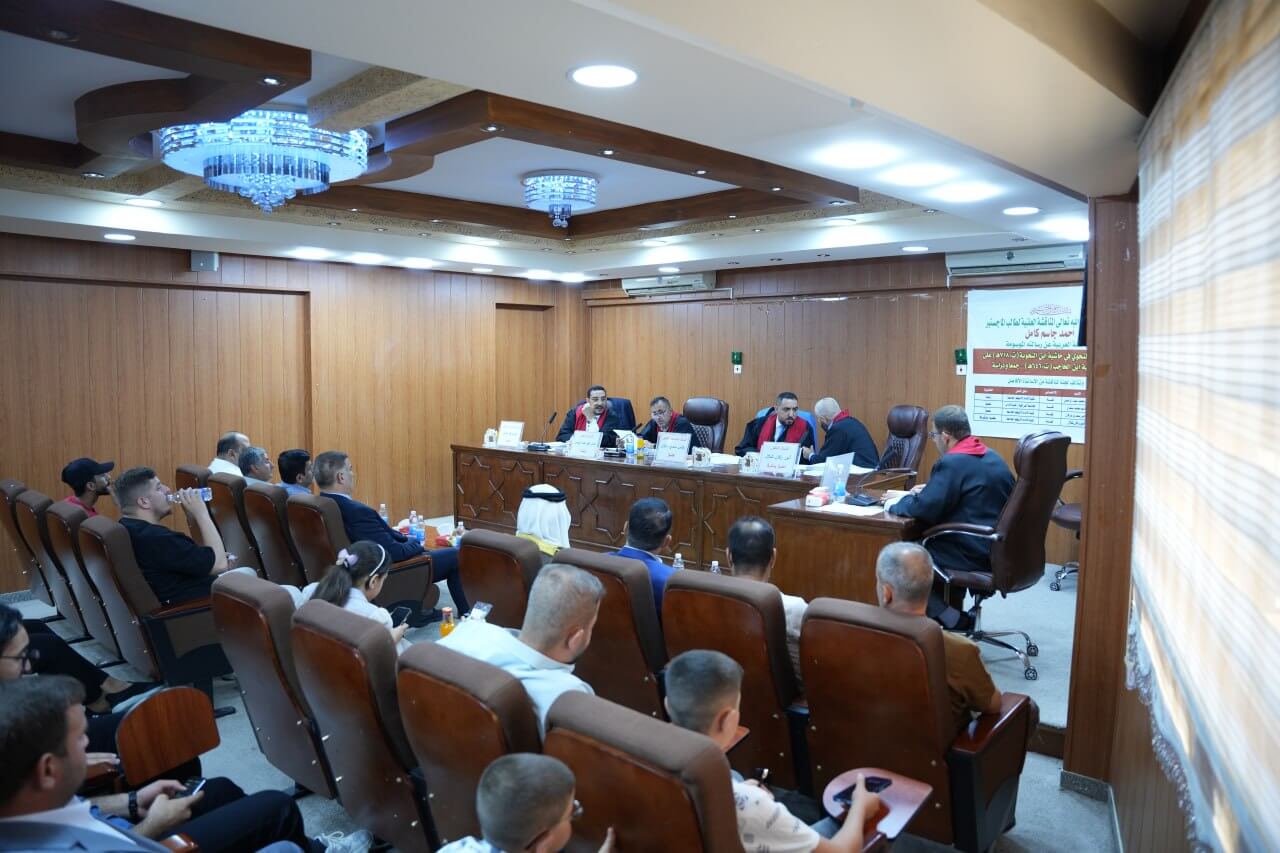 The public defense of the Master’s thesis by the student Ahmad Jasim Kamil, from the Department of Arabic Language, was held on Tuesday, 6th August ,2024, in the hall of the late Dr. Makki Al-Kubaisi, in the building of Al-Saba’ Abkar. The thesis was titled “The Grammatical Disagreement in the Footnote of Ibn Al-Nahwiyya (d. 718 AH) on Al-Kafiya of Ibn Al-Hajib (d. 646 AH): Collection and Study”. After a thorough discussion of the thesis and its contents by the committee members, the thesis was approved with a satisfactory grade.