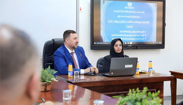 The lecture was presented by Dr. Manal El-Wakil from the Integrity Authority, Dr. Durayd Issa and Dr. Ahmed Siddiq from the Al-Imam Al-A’dham University College. The conclusion of the seminar witnessed the taking of commemorative photos and the honouring of the guest lecturers from the Integrity Authority.