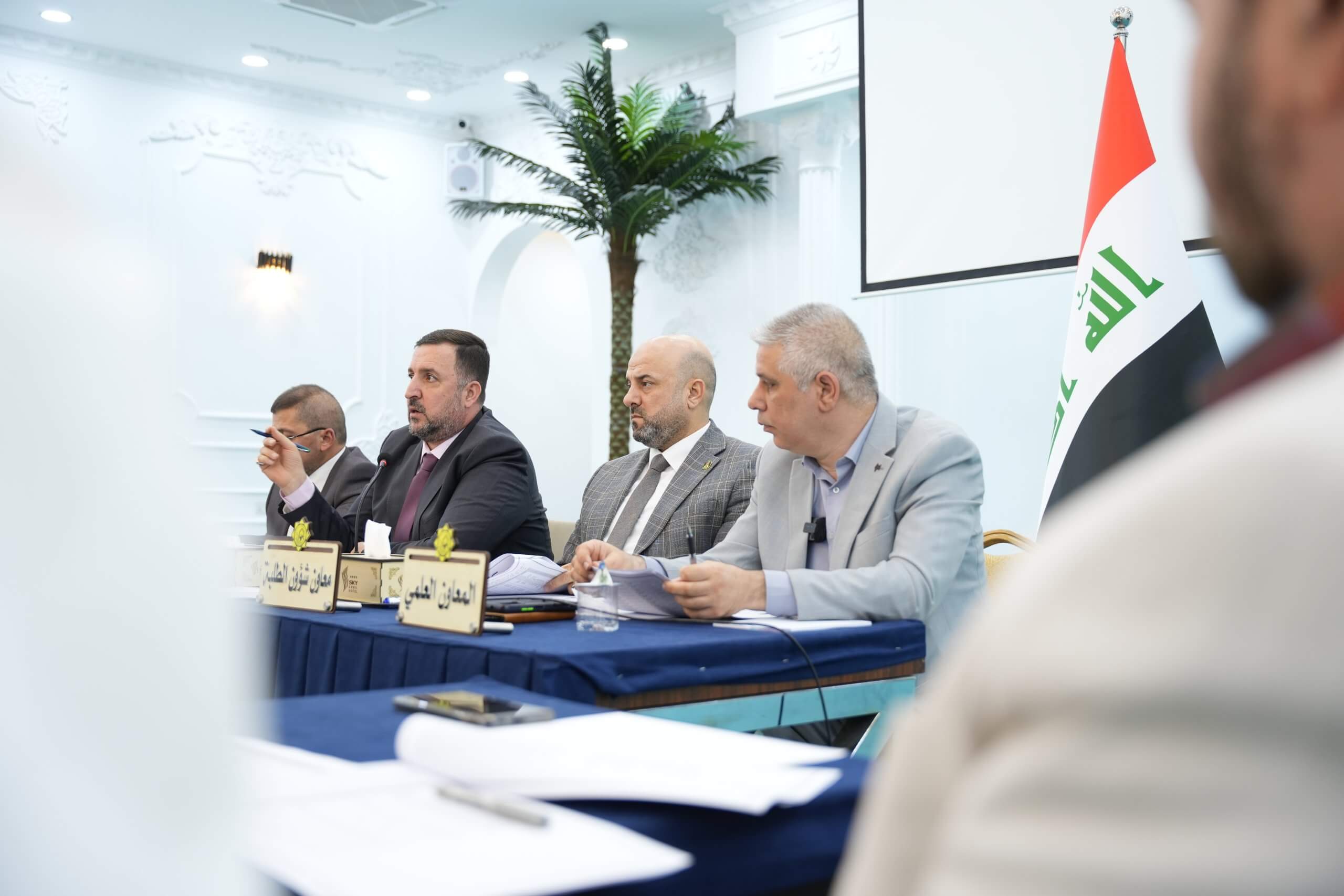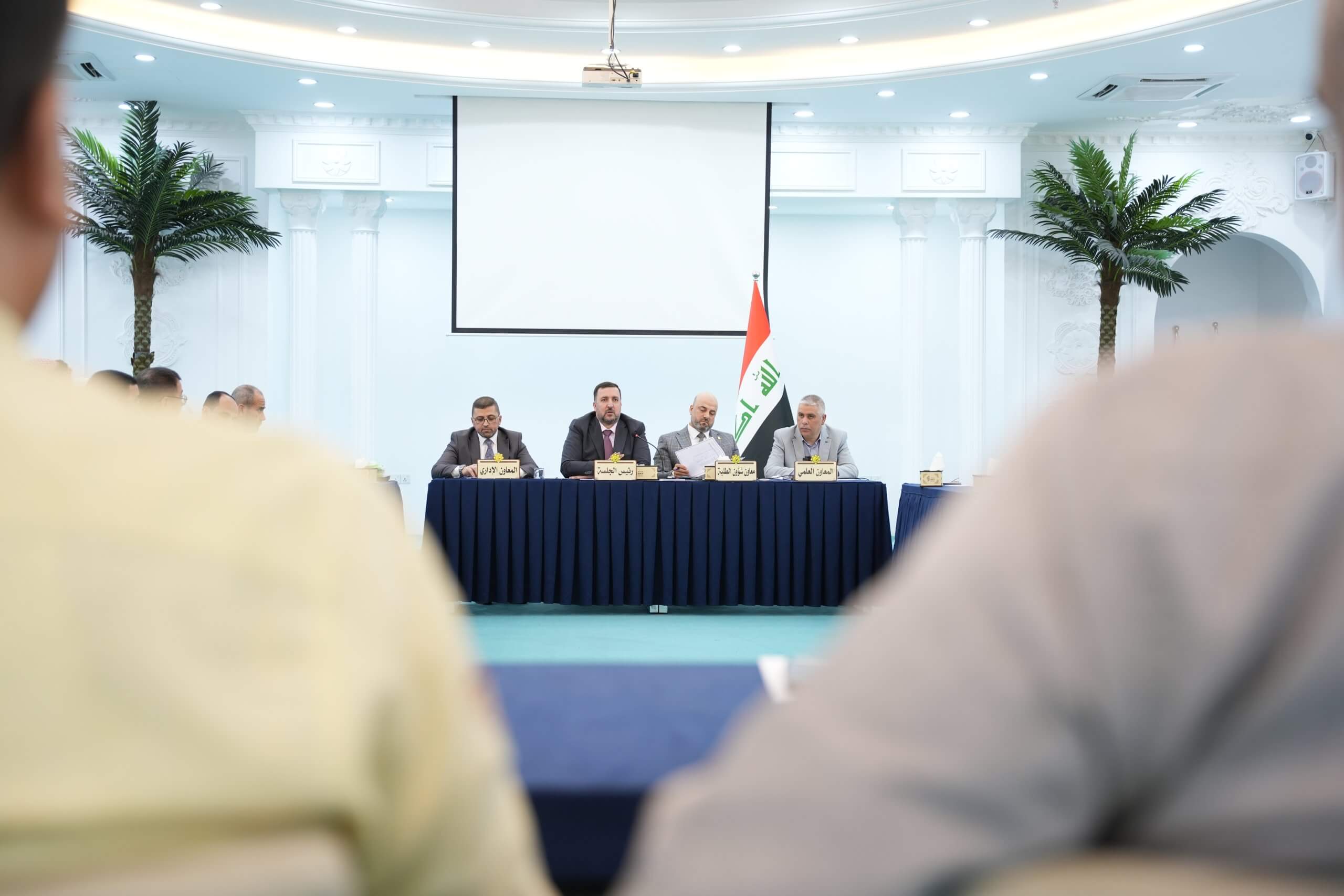 On Tuesday, 13th August , 2024, the College Council held its twelfth meeting for the academic year 2023-2024, chaired by the Dean of the College, Assistant Professor Dr. Salah al-Din al-Taha, with the participation of the Dean’s assistants and the heads of academic departments in Baghdad and the provinces. The council discussed several points on the agenda and made the necessary decisions regarding them.