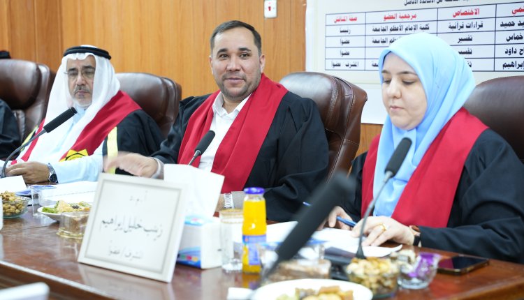 On Thursday, 5th September , 2024, a public discussion was held for the master’s student in the Department of Quranic Readings, Dhuha Taha Ubaid. This took place in the hall of Dr. Maki Al-Kubaisi—may Allah have mercy on him—in the Sab’a Abkar building, regarding her thesis titled “The Method of Ibn Barjan (d. 536 AH) in Presenting Quranic Readings and Their Interpretation in His Work Tanbeeh Al-Afham.” After a thorough discussion of the thesis with the esteemed committee members, the thesis was accepted with a satisfactory grade.