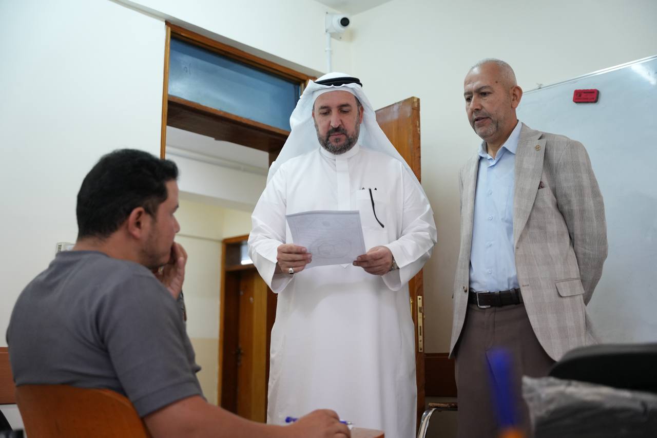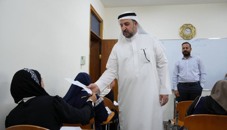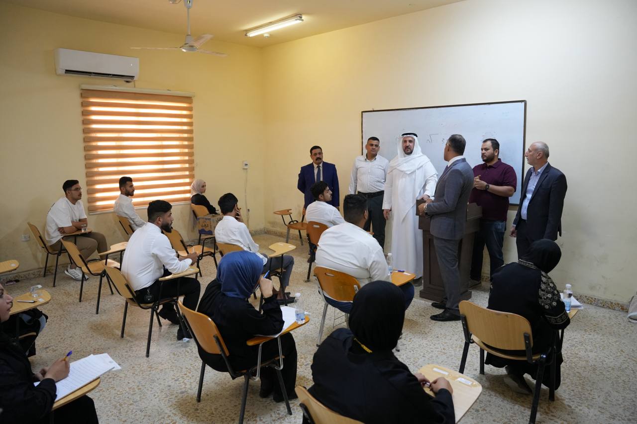 The Honorable Dean of the College, Assistant Professor Dr. Salah Al-Din Al-Taha, visited the academic departments in Baghdad this morning, informing himself about the progress of the final exams and directing his esteemed self to provide the optimal atmosphere for the success of the exams. He expressed his delight at the high level of organization in the academic departments, urging everyone to adhere completely to the scheduled exam times in accordance with the instructions of the Ministry of Higher Education and Scientific Research, and wishing our dear students success and achievement.