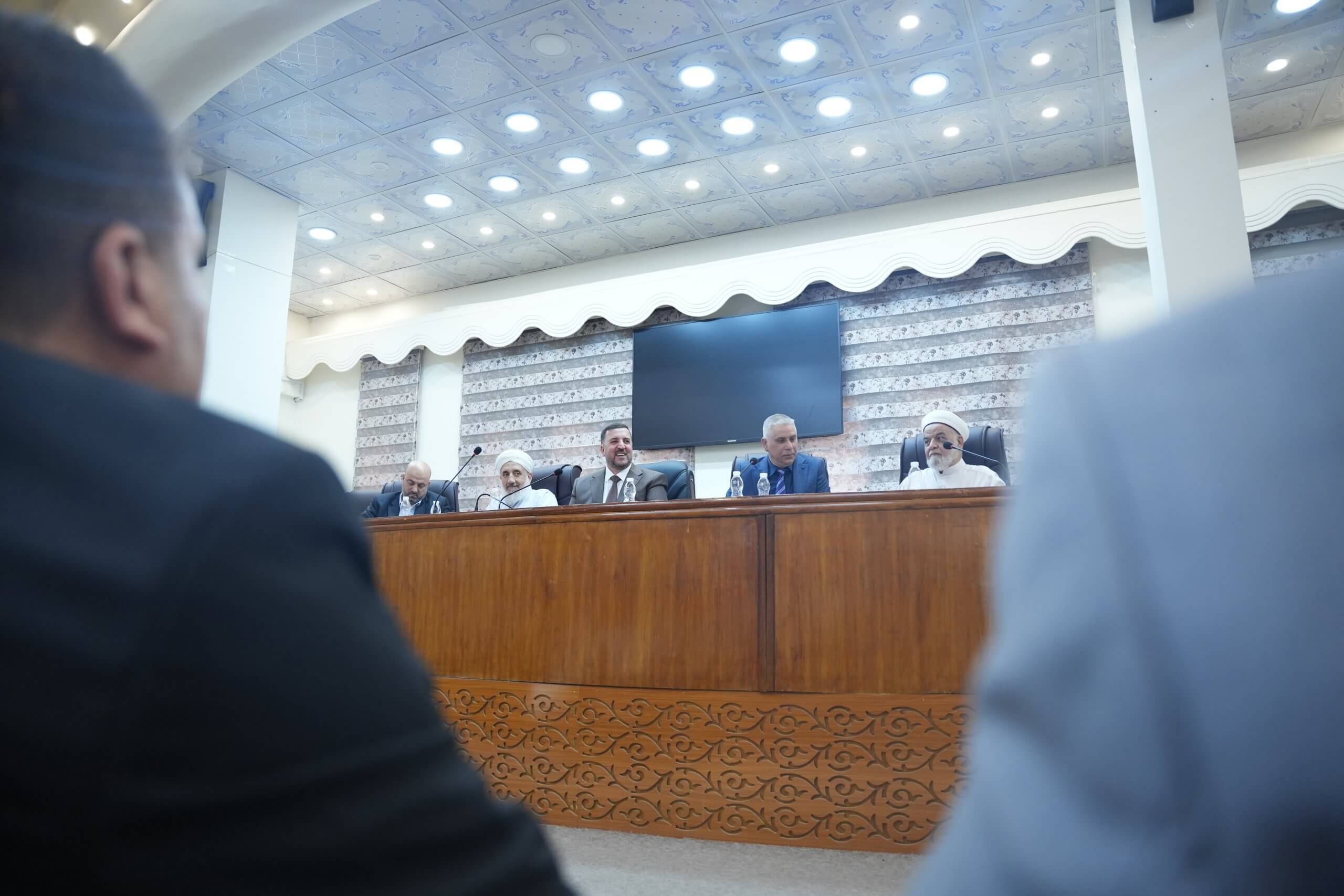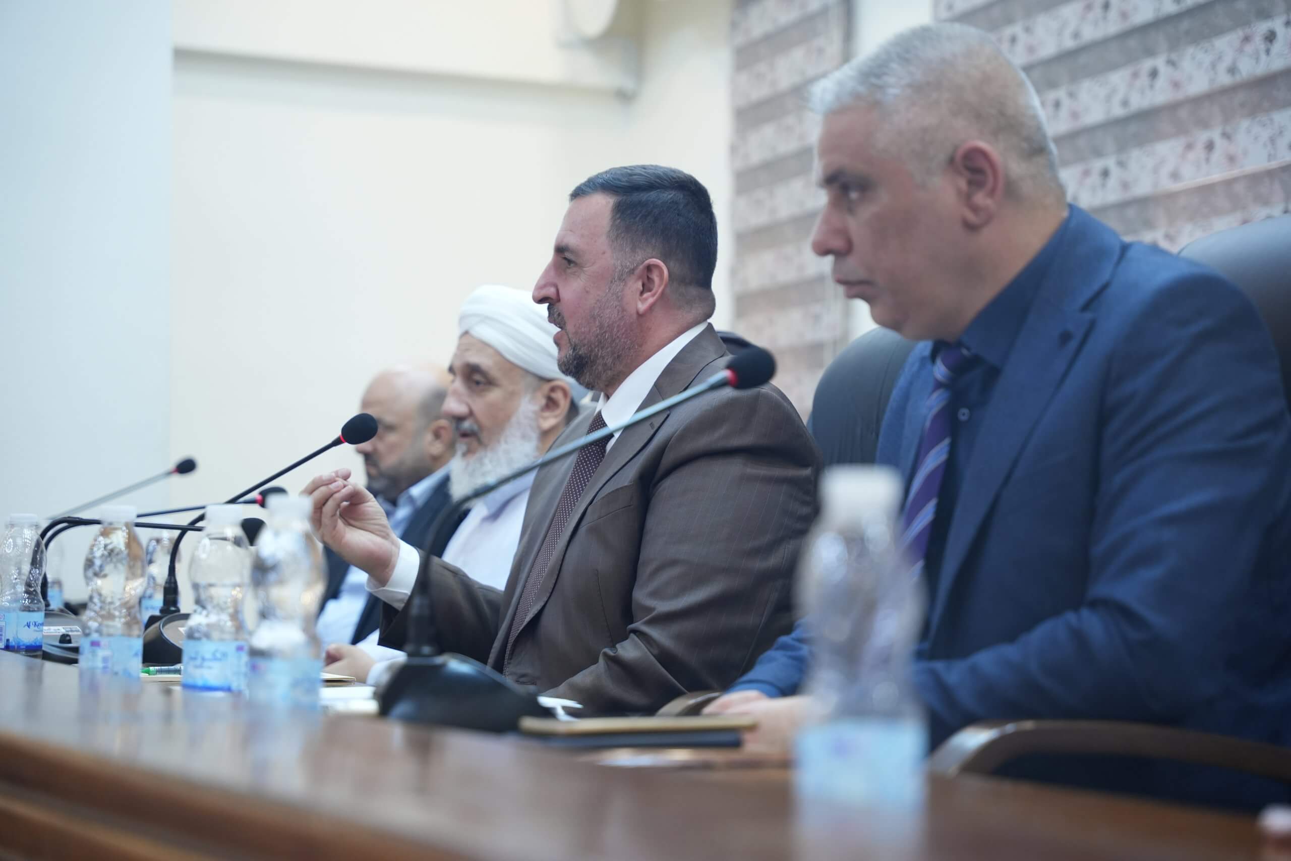 Today, Sunday, 2th, June, 2024, the Asst. Prof. Dr. Salahuddin Al-Tahe, the Dean of the College, met with the academic staff Baghdad departments, in the hall of Imam Muhammad bin Al-Hasan Al-Shaybani, in the college building in Al-Adhamiya.