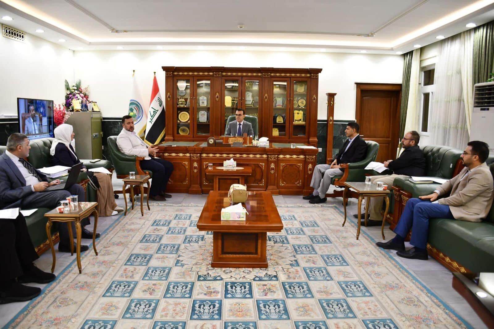 The Government Program Follow-up and Implementation Committee at the Sunni Endowment Directorate, chaired by the Deputy Director General for Administrative and Financial Affairs, Dr. Muhammad Salih Rashad, held an extensive meeting with a delegation from Al-Imam al-Adham University College and the Department of Religious Education, in the presence of the Dean of the College, Assistant Professor Dr. Salah al-Din al-Taha The purpose of the meeting was to discuss the implementation of the government program. During the meeting, the ways to address obstacles and follow the necessary procedures according to the administrative frameworks followed in government departments were discussed, in order to implement the government program specific to the Directorate within the specified timeframe.