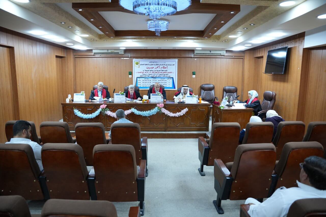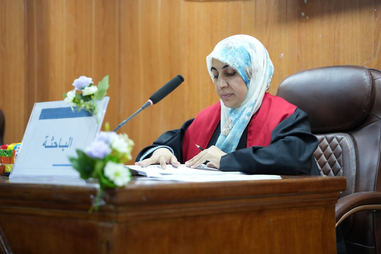 On Wednesday, 26th June , 2024, the public discussion of the Master’s thesis of the student (Ahlam Ahmad Hussein) in the Department of Arabic Language was held, in the lecture hall of the late Dr. Al-Kubaisi in the Saba’ Abkar building, on her thesis entitled (The Grammatical Implication in the Interpretation of Ibn Kamal Pasha (d. 940 AH)). After a thorough discussion of the thesis and its contents by the esteemed members, the thesis was accepted with a ‘Satisfactory’ evaluation.
